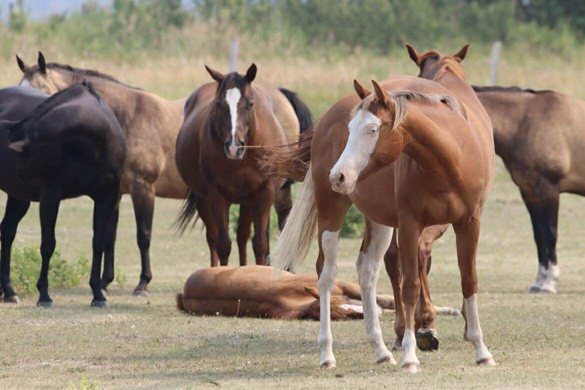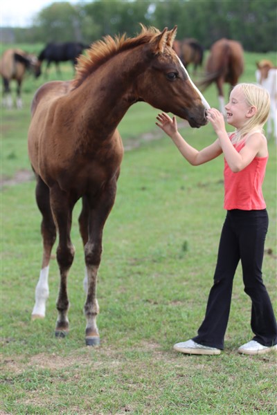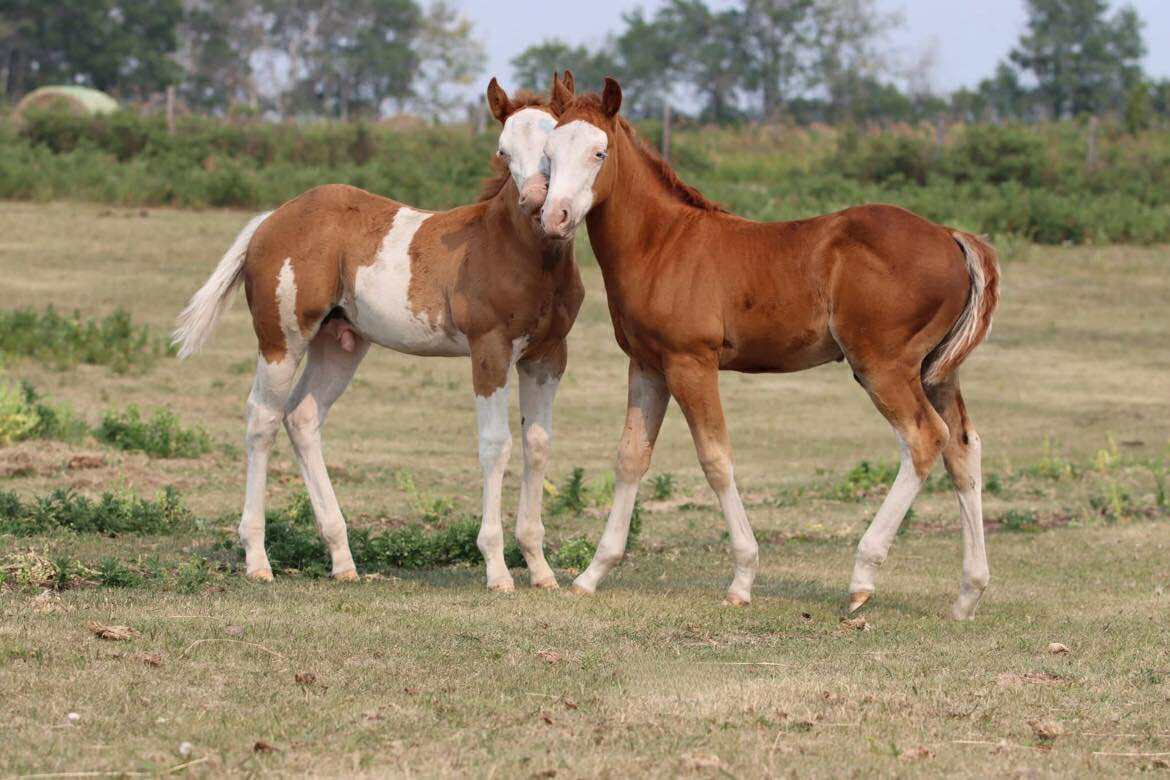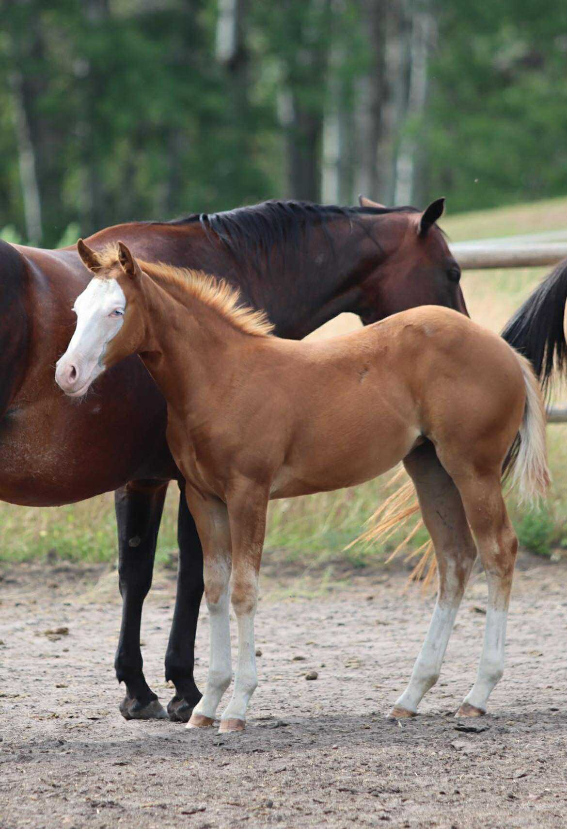 "Miracle" is just that....a miracle. She was born backwards with rear feet & hocks, 1% of births occur like this and .04% survive.....and she did just that with our quick actions & our vet's assistance to bring her into this world. We are only offering Miracle to a show home. Miracle is a sweet & friendly filly out of our daughter of Smart Spook, He was one the highest earning NRHA Stallions with $405,000 and offspring earnings of $7 million. His son "Patriot" is now the highest earning reining horse with $835.000......Smart Spook's Grand Sire, Smart Chic Olena has offspring earnings of over $12 million in Cutting, Reining & Cowhorse, with $6 million in NRHA. This filly is gorgeous, she always poses perfectly straight. She is so much fun to watch her run & play in the pasture, she is in your pocket and LOVES people. Halter broke, zero catching required, she's been raised in the barn/boxstall, paddocks, large pasture & forest. She has the potential to be your next Reiner or Working Cow Horse. Color DNA Aa, ee, nd1/nd2, SW1, SW2 |