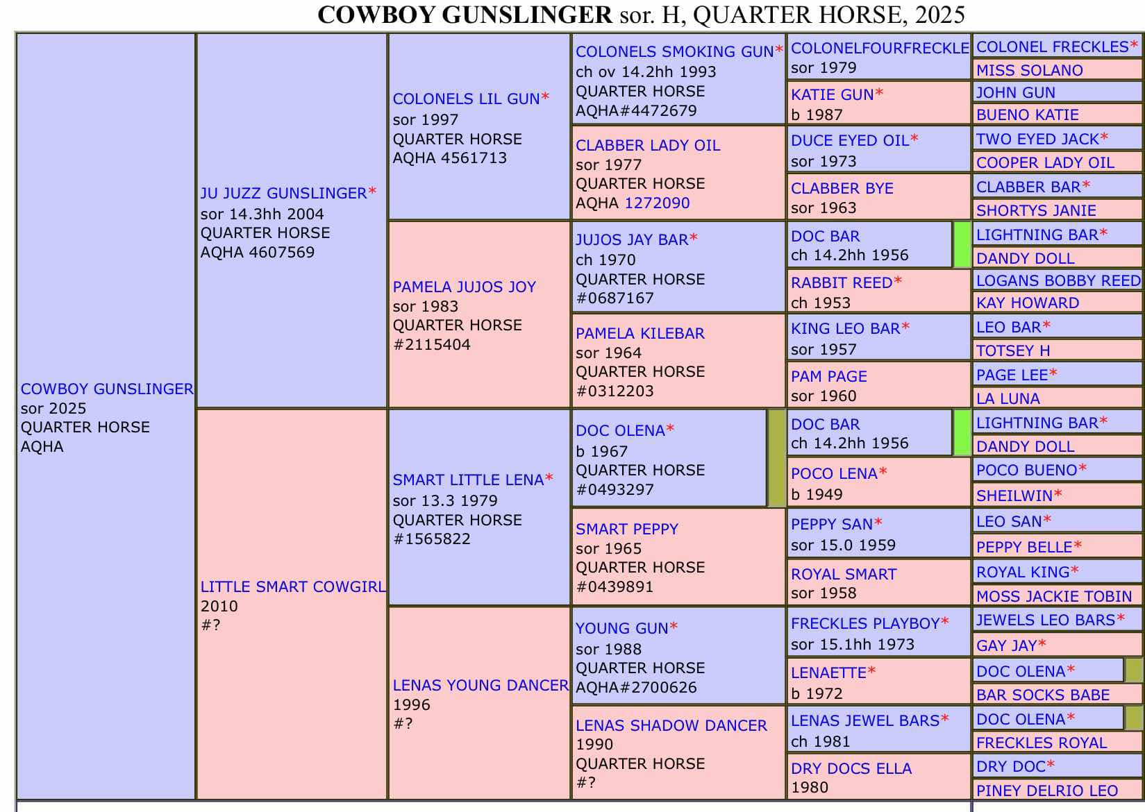 Cowboy Gunslinger $$ Contact for price $$ Sire: Ju Juzz Gunslinger Dam: Little Smart Cowgirl x SMART LITTLE LENA 2025 AQHA & APHA Sorrel stallion - May 12, 2025 https://youtu.be/xL3q3K2YOuo - Video to watch |